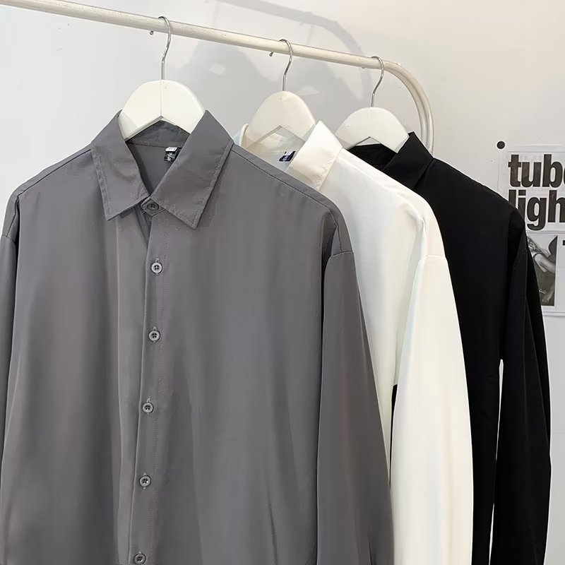 Light mature style white shirt men’s long-sleeved spring and summer Korean style ins Ruan handsome inner shirt trendy draping top clothes
