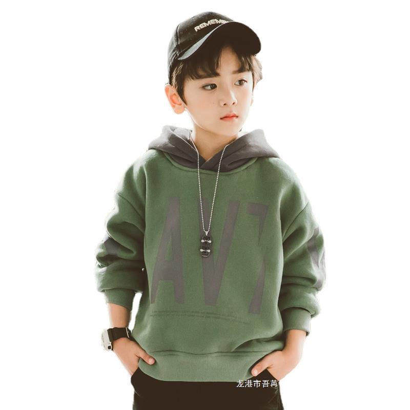 Barabalra Boys Sweatshirt Autumn 2024 New Style Middle and Large Children Spring and Autumn Boys Handsome Hooded Thickened Stitching