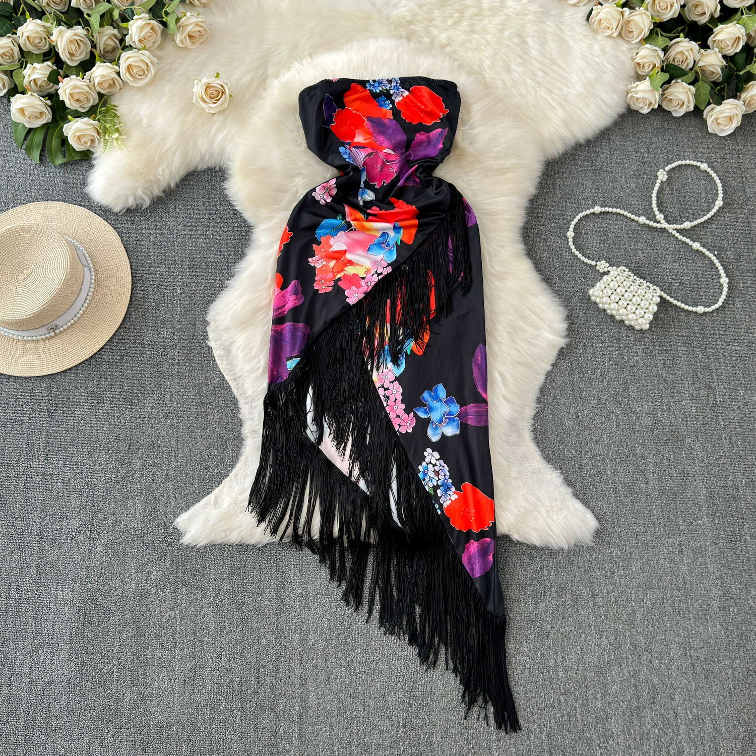 Printed Irregular Resort Style Travel Dress with Chest Wrap