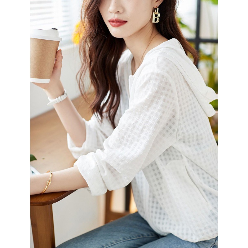 Casual Sun-protective Jacket Women’s 2024 Summer New Simple Casual Hooded Zipper Long-sleeved All-match Sun-protective Clothing Shirt