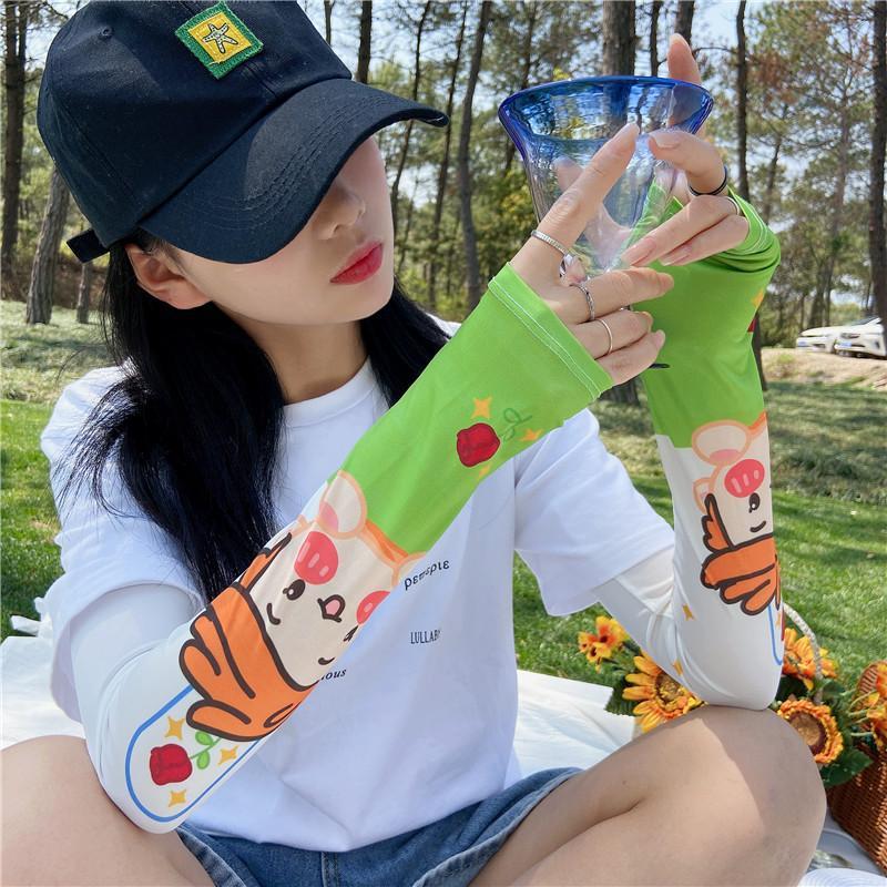 Ice Sleeve Women’s Cute Girl Hyun-Hyun Sunscreen Women’s Hand Sleeve Arm Guard Sleeve Printed Ice Silk Gloves Driving Artifact