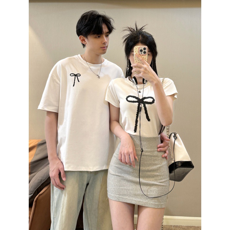 2024 Summer Trendy Bow Print Men’s and Women’s Short-sleeved Couple T-Shirt