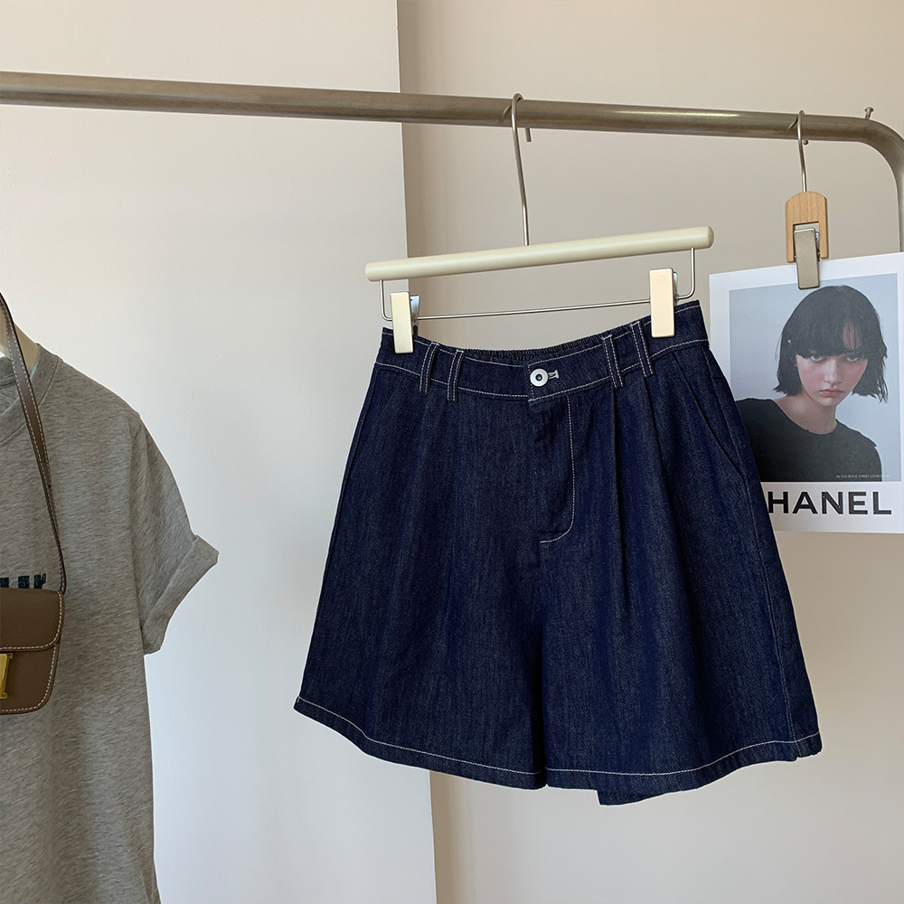 Korean Style Retro Foreign Style dark blue High Waist Denim Shorts Women’s Loose Lazy All-match Wide Leg Casual Hot Pants for Summer