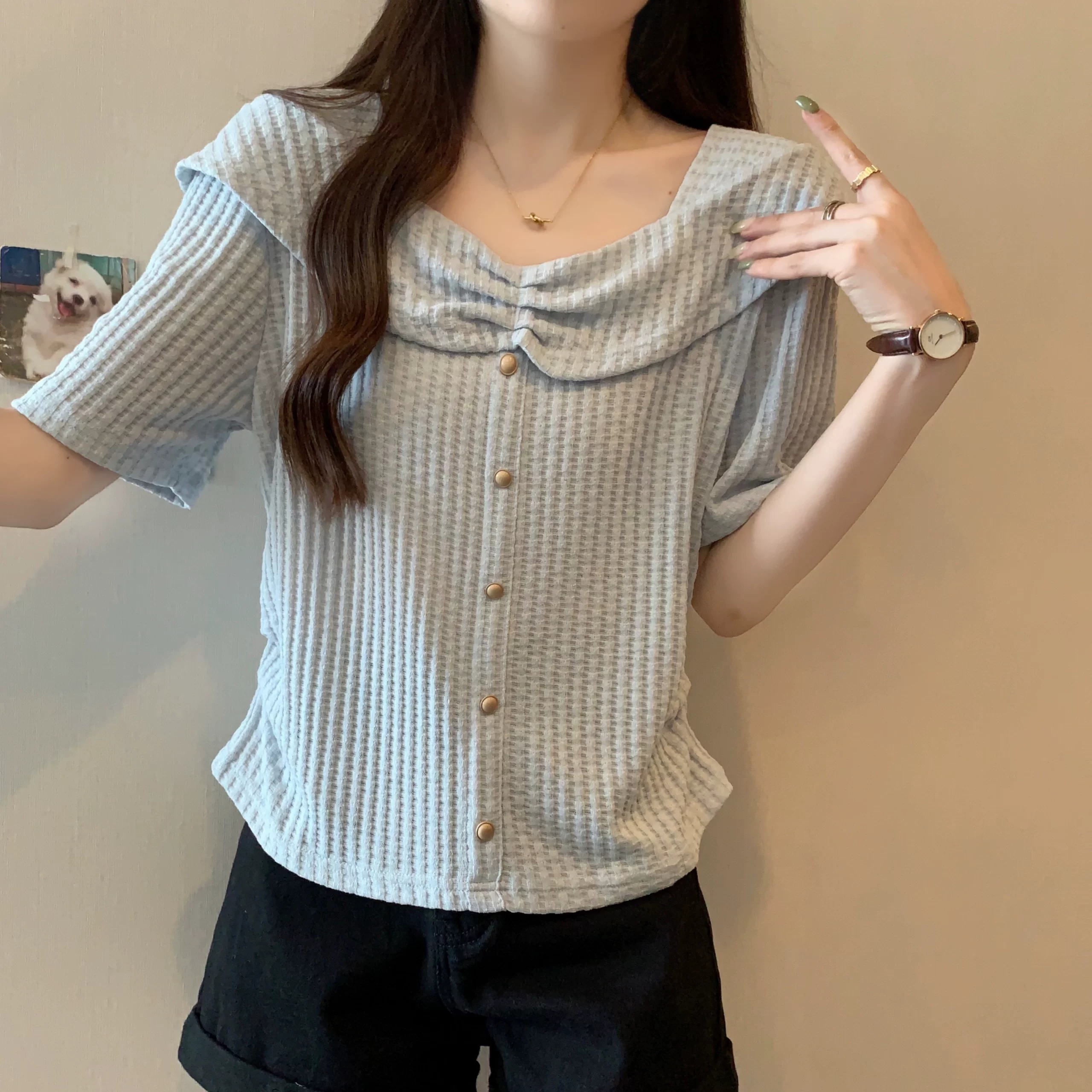 Summer loose niche design right shoulder short-sleeved T-shirt