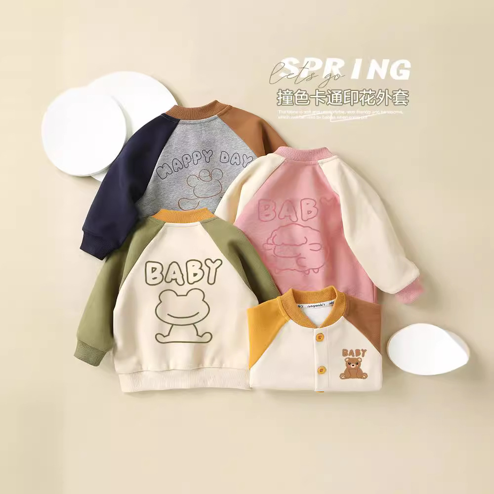 Spring and Autumn New Boys’ Girls’ Casual Baseball Suit Children’s Top Baby Clothes Contrast Color Long Sleeve Jacket