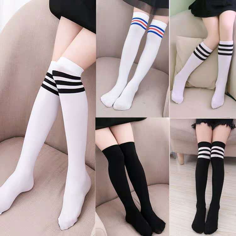 Boys and girls students spring and summer football socks thin stockings knee-high anti-slip socks high socks base socks White