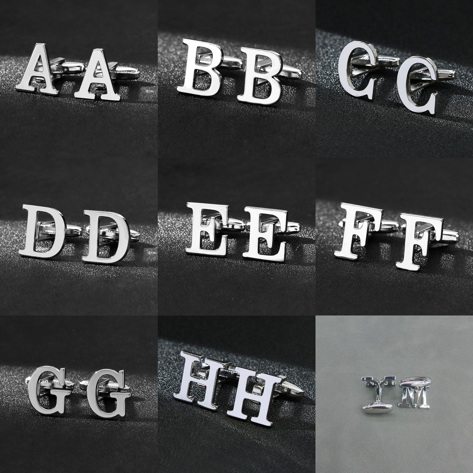 Silver Letter Cufflinks Capital A- Z French Shirt Cufflinks Long-term Spot Cross-border Hot Selling Iron Material Foreign Trade