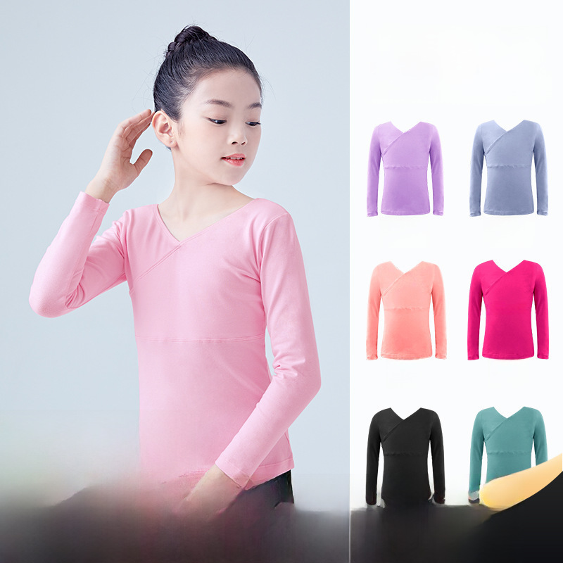 New dance clothing children’s spring long sleeve suit front Cross Girls’ practice clothes Children’s Dance Top wholesale
