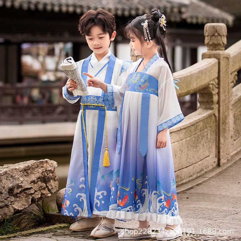 Hanfu Children’s Male and Primary School Students Hanfu Boys and Children’s Ancient Clothing Chinese Studies Clothing Performance Clothing Girls Antique Tang Suit