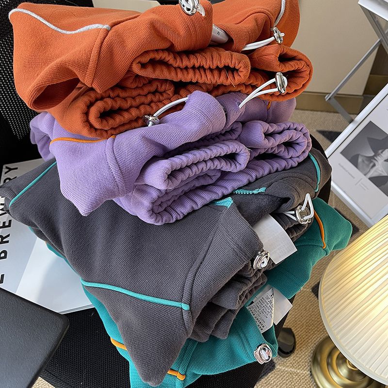 1.00 kg-150.00 kg plus size Design Sense Niche Wei Yi Women’s Spring and Summer Hooded Contrast Color Loose Lazy Coat Couple’s Top
