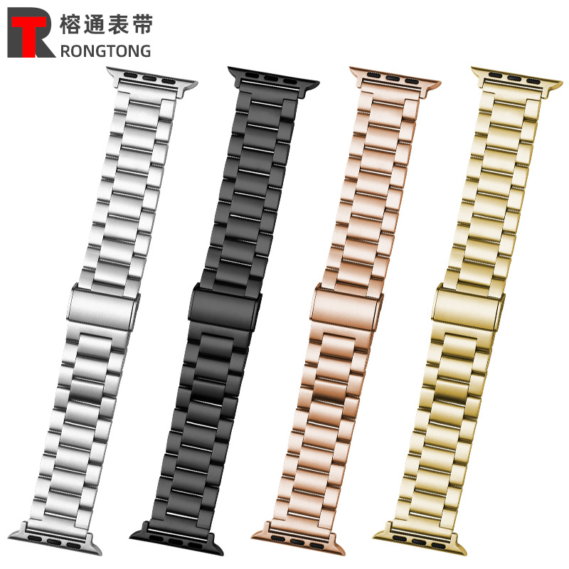 Suitable for apple Watch band stainless steel metal iwatch steel sheet with apple watch8SE Huawei buckle three beads