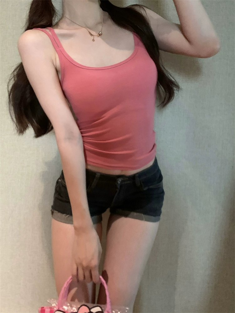 Real Shot Real Price 2024 Summer New Pure Low Neck Lace Stitching Camisole Vest Slim-fit Slimming Inner Top