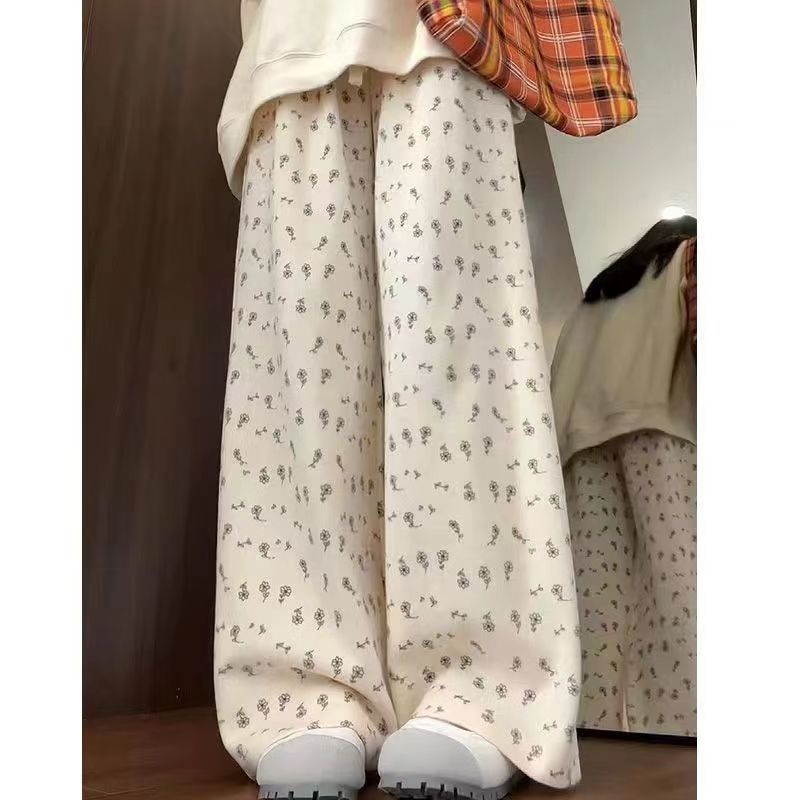Floral Wide-leg Pants Women’s Summer Thin 2024 New High Waist Slimming Loose Small Dose Casual Straight Pants