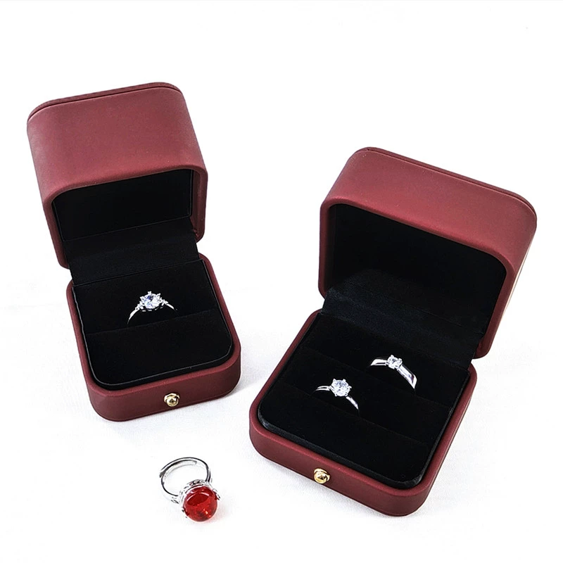 High-end PU leather ring box storage, wedding diamond ring double pair ring box, wedding ceremony exchange props, high-end feeling