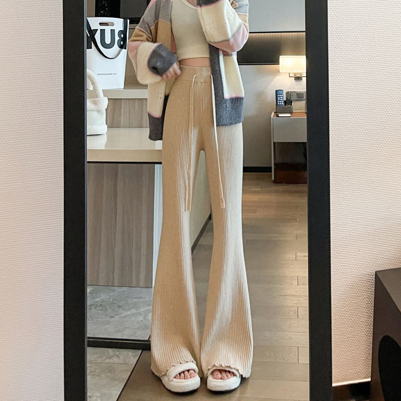 Soft Waxy Pit Knitted Pants Women’s Autumn and Winter Thickened High Waist Slimming Wide Leg Pants Loose Casual Dape Micro-flared Pants