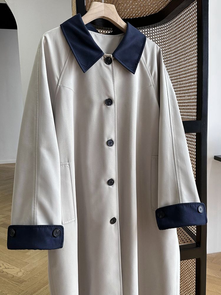 Casual contrast color preppy style trench coat for women 2023 Autumn New Korean style loose long retro cardigan 77010