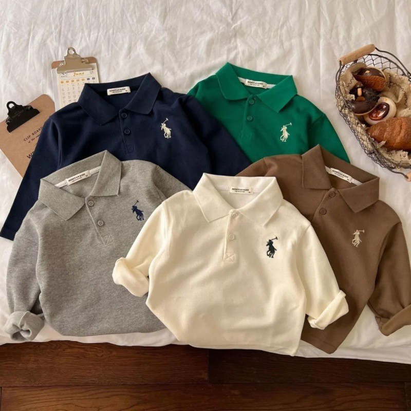 Baby’s Lapel Polo Shirt Long Sleeve Spring and Autumn Boys’ Korean Base Shirt T-Shirt Children’s All-match Children’s Top