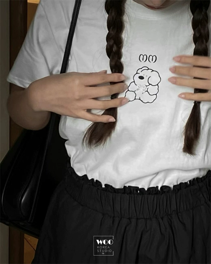 Simple printed sweet girl short -sleeved cute bow