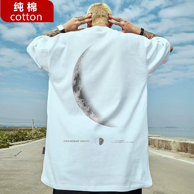 Pure cotton tide brand retro locomotive loose short -sleeved T -shirt men’s beautiful hip -hop tide plus fat large size fat man half -sleeve