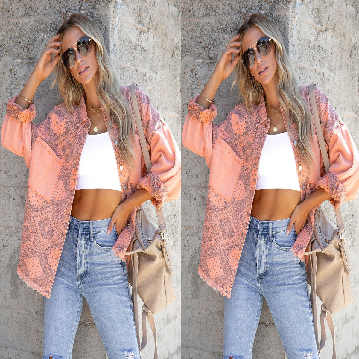 22 European and American cross-border autumn and winter New Fashion casual printing loose rough denim coat women’s 617