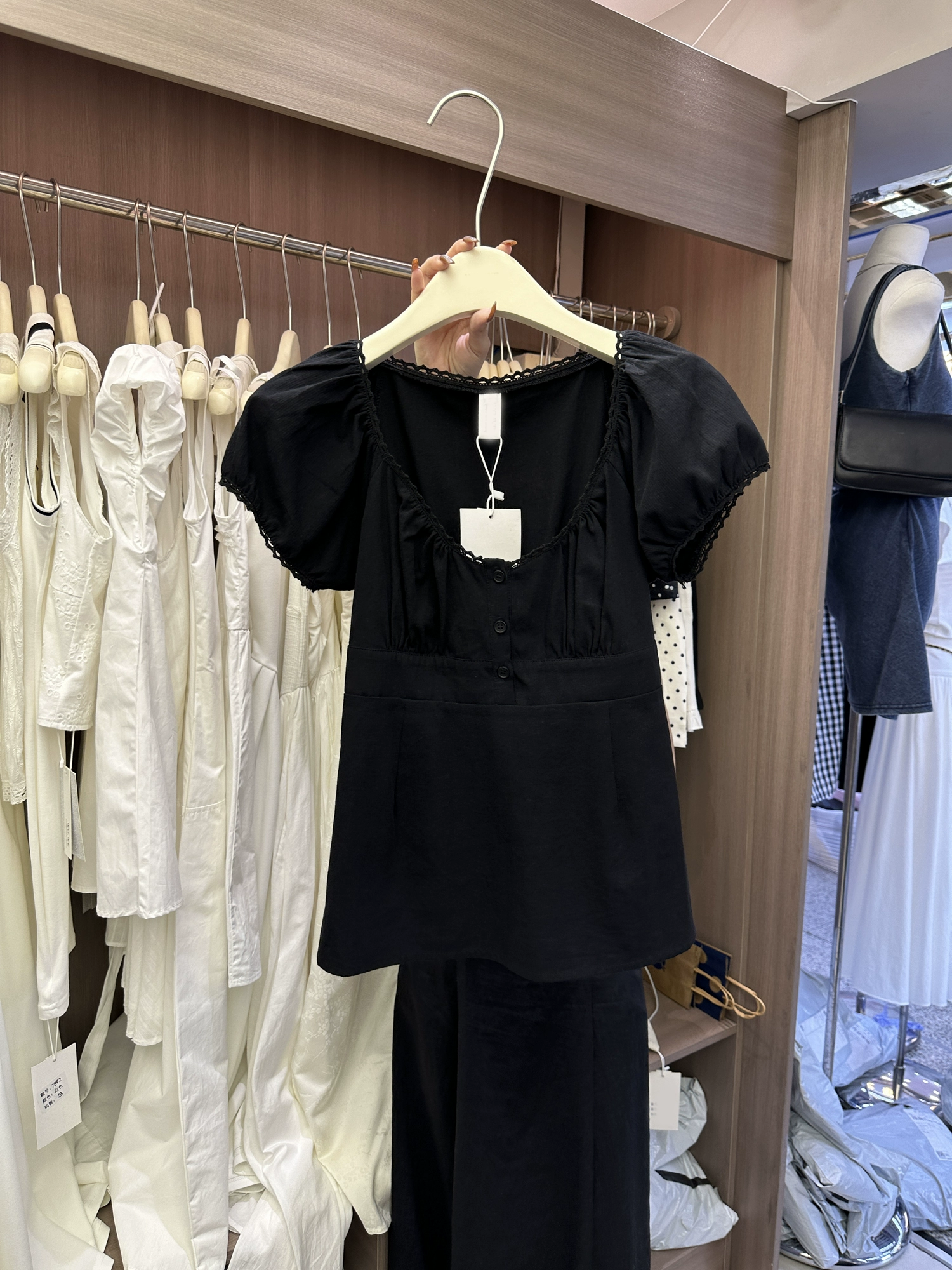 Thirteen lines of slim U -collar bubble sleeve tops