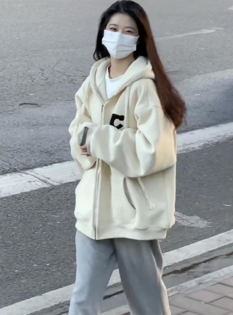 Fleece-lined Thickened Coat Women’s Loose Top ins Fashionable Outer Wear Simple Style Zipper Cardigan Hoodie Women’s Cross-border Sweater