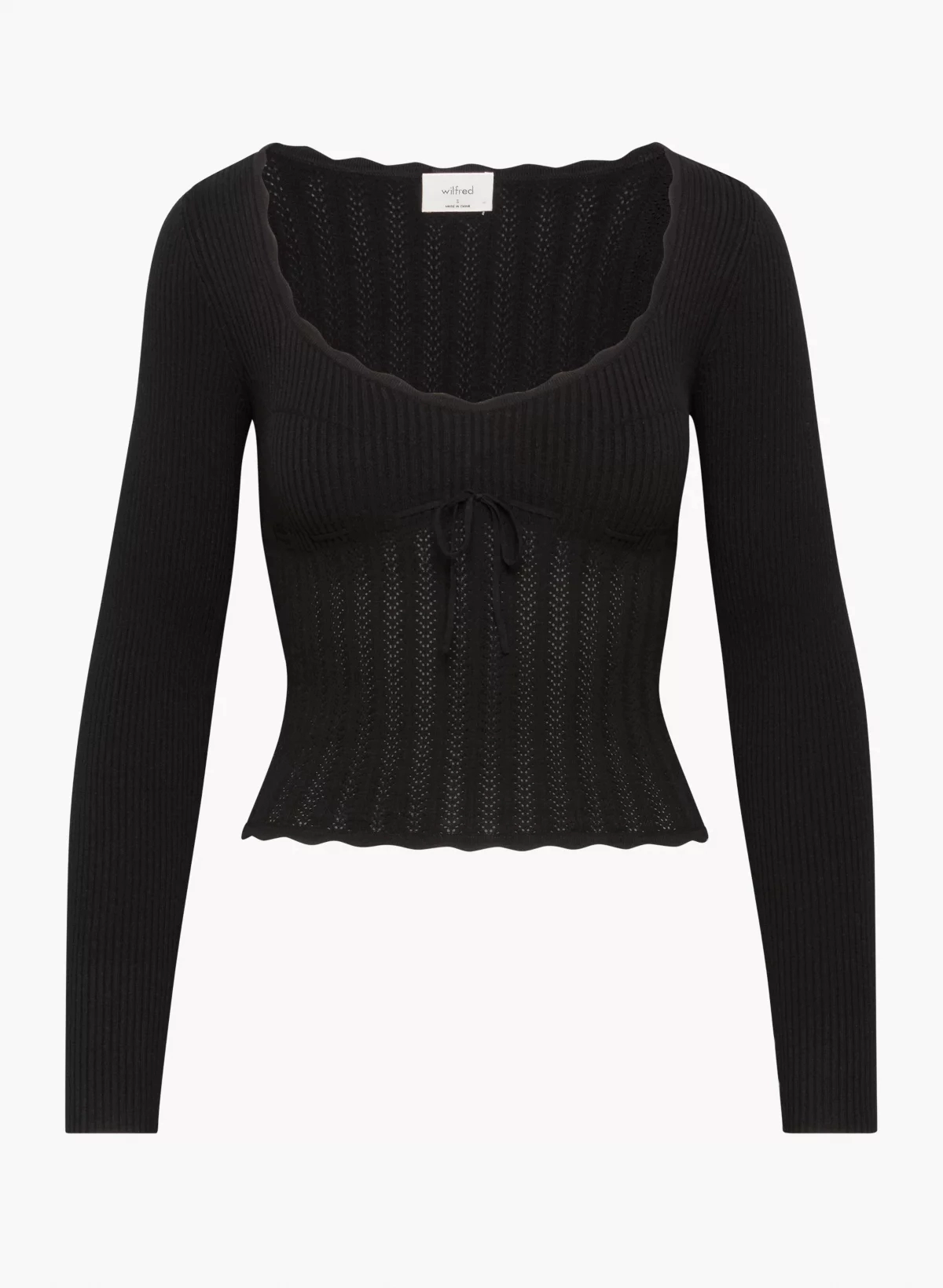 2024 spring and summer new Aritzia105332U collar hollow lace crochet waist reduction age sweet knitted pullover for women