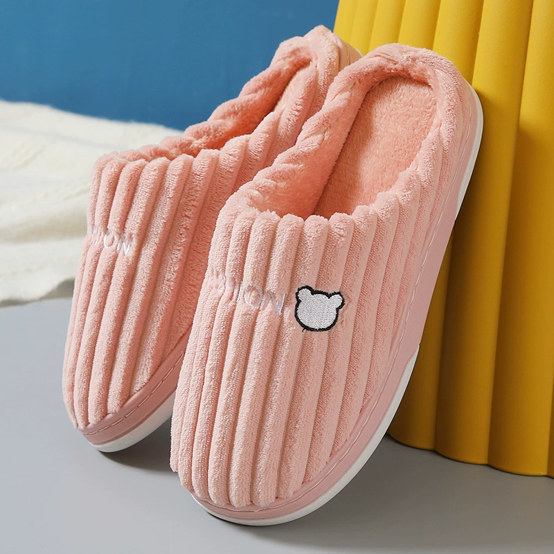 Autumn and winter cotton slippers for female couples at home, indoor warm plush slippers for men, anti-slip thickened slippers for winter