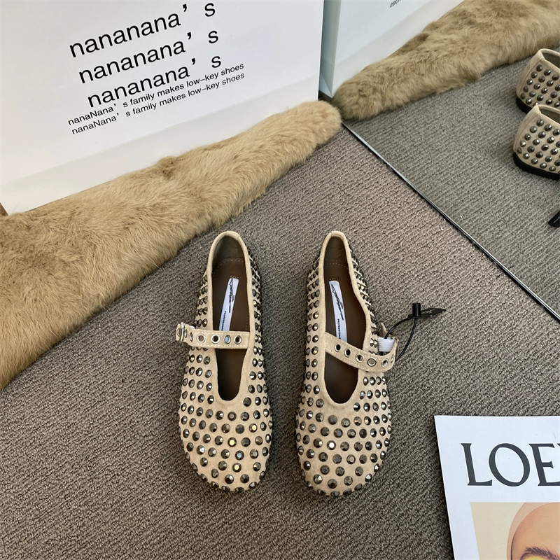 nana rivet flat comfortable ballet dancing shoes with rhinestones