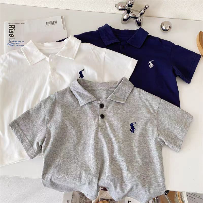 Children’s Polo Shirt 2024 Summer Short-sleeved T-shirt Boys and Girls Lel Top Baby Thin Pullover