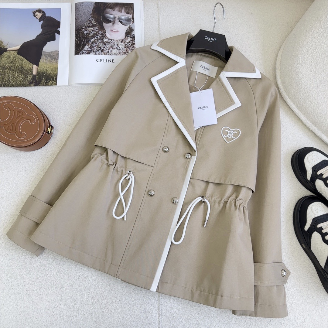 24 Autumn New Korean College Style Lapel British Style Love logo Drawstring Waist Coat Coat
