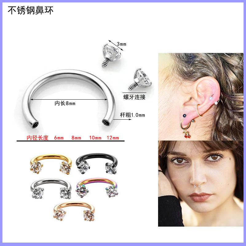 Cross-border hot sale stainless steel earrings small ear bone nails stainless steel nose nails lip nails piercing horseshoe rod nose ring wholesale