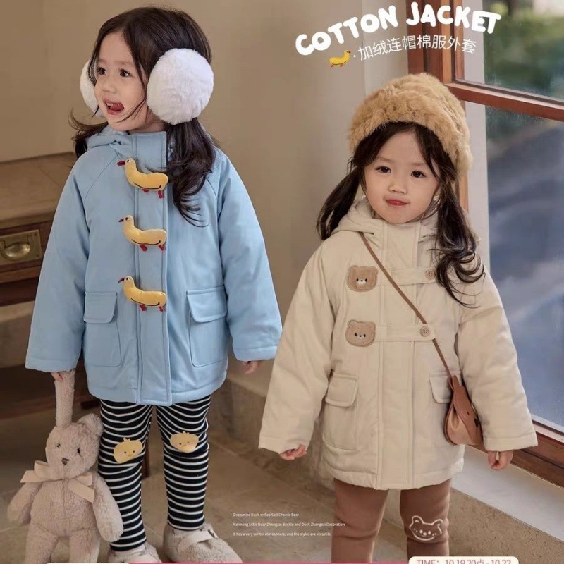 Free shipping popular girls’ mid-length cotton-padded clothes baby cartoon bear coat children’s casual hooded winter windproof protection