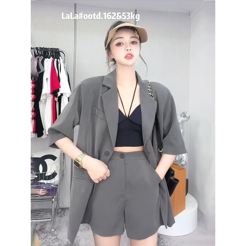 2024 summer new fashion suit women’s temperament short sleeve suit top coat shorts two-piece set