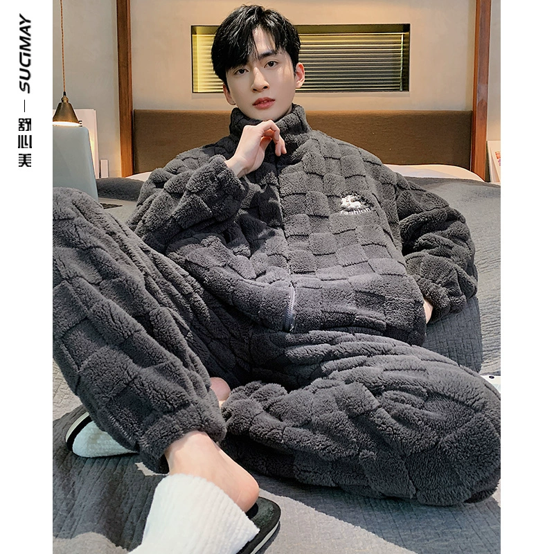 Winter pajamas, men’s home clothes, men’s coral velvet flannel autumn and winter youth thickened velvet suit winter
