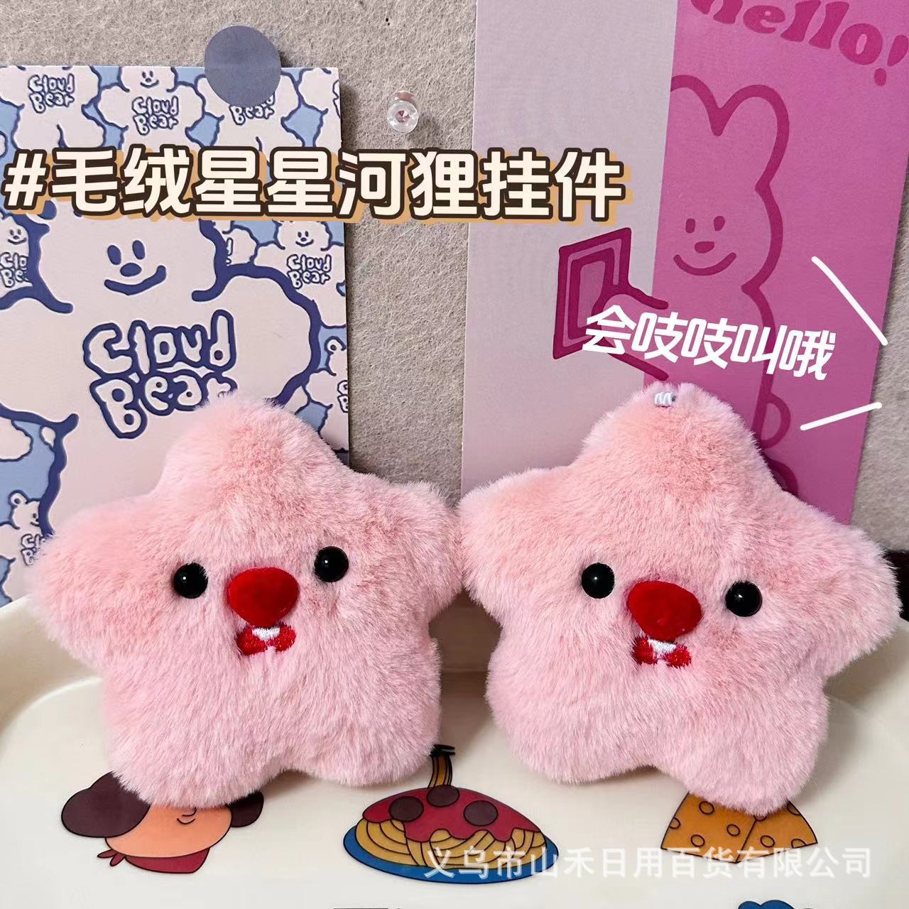 New Cartoon Plush Star Beaver Pendant Squeaky Beaver Head Bag Hanging Cute Girl Plush Pendant
