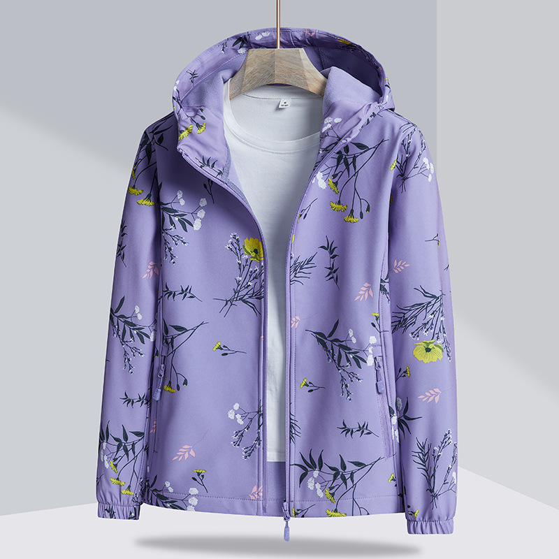 New Outdoor Soft Shell Hooded Windbreaker Coat Women’s Casual Fashion Trendy Printed Thin Jacket Top Quick-drying
