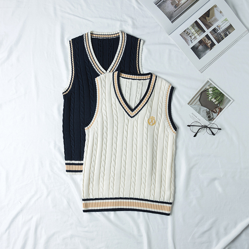 Spot College British Style JK Uniform Embroidered V-Neck Girl Vest Student School Uniform Sweater Vest Knitted Shirt