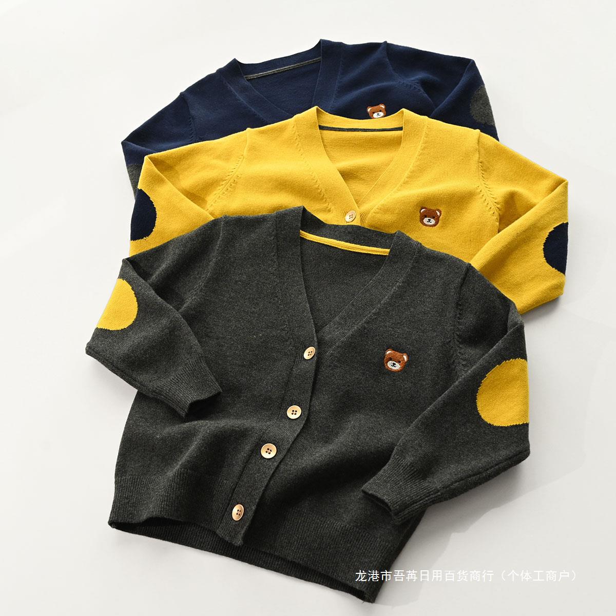 Children’s knitted sweater cardigan boys’ and girls’ coat embroidered bear patch autumn and winter new children’s clothing