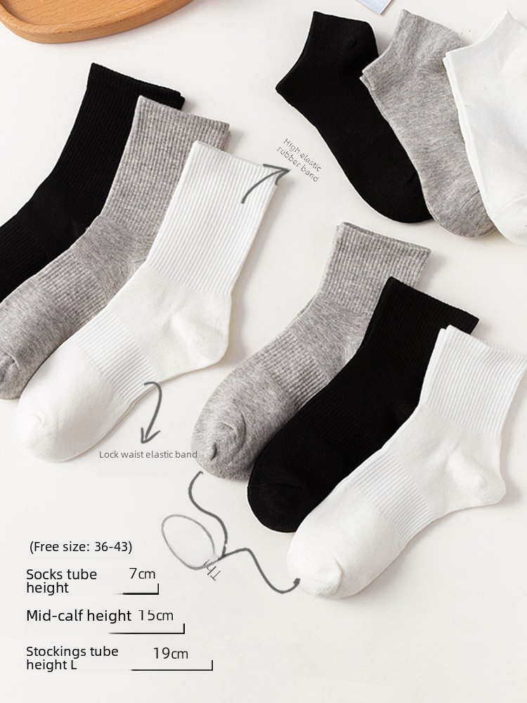 White Socks Women’s Spring and Autumn Cotton Socks Summer Solid Color Black Short Socks Autumn and Winter ins Trendy Long Socks for Men