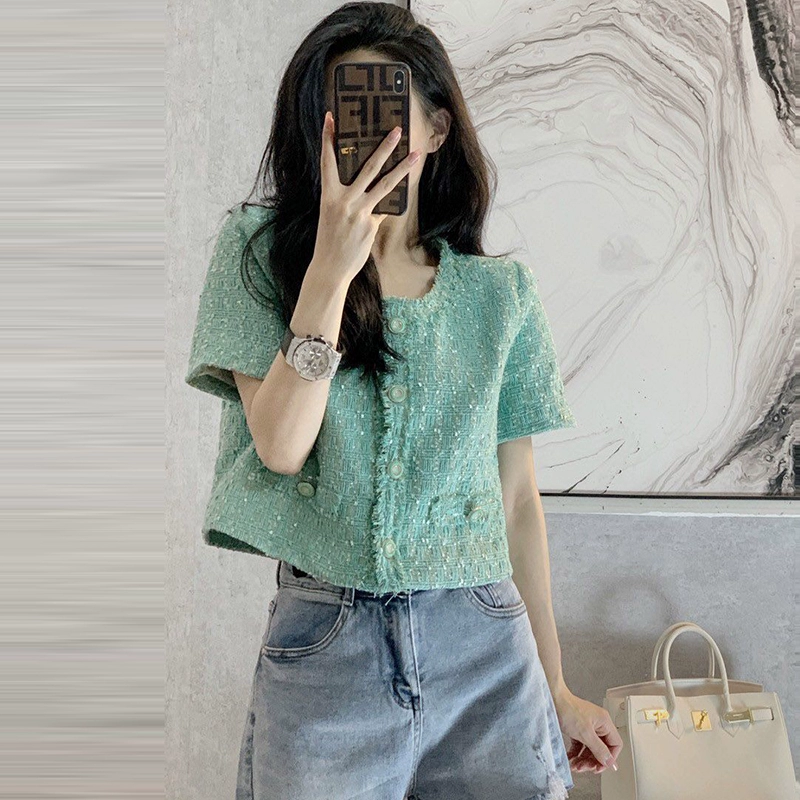 Small fragrance style fashionable age-reducing thin casual jacket short sleeves