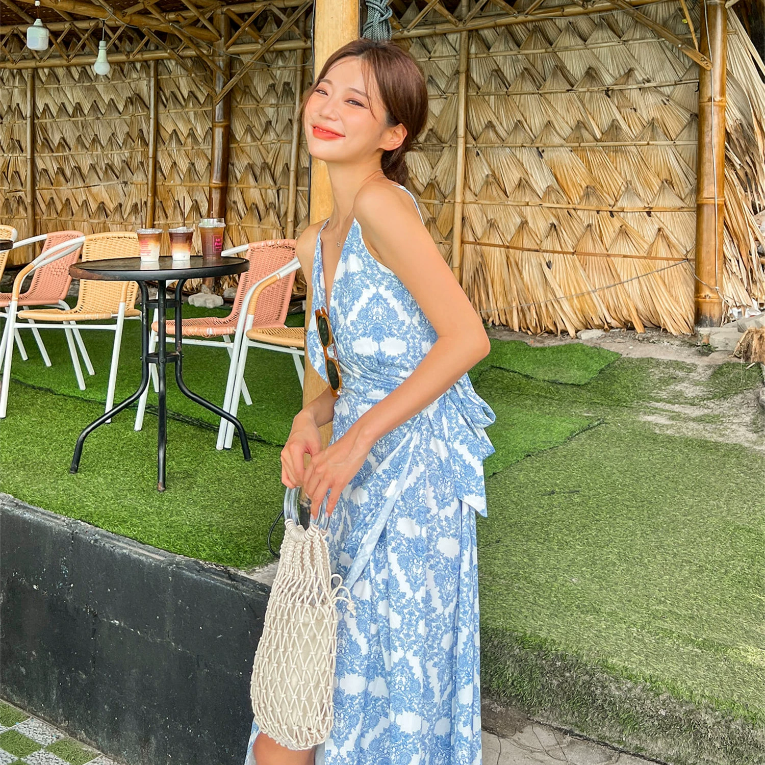 Retro national wind seaside tourism dew back dress