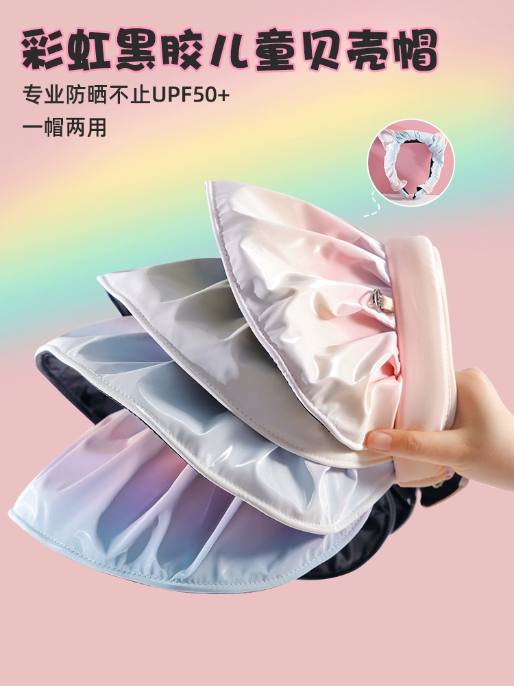 Children’s sunscreen hat girl rainbow hair hoe shell hat anti -ultraviolet rays summer beach sun beaches sunbathing sun hat