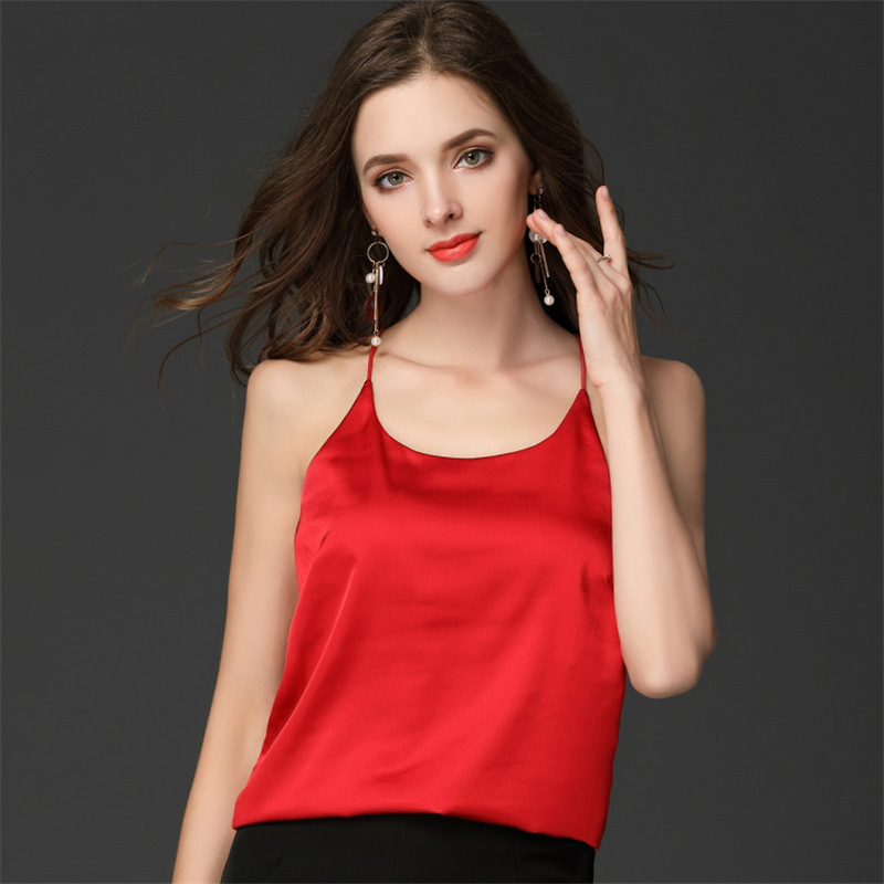 Imitation Silk Sexy Outback Camisole Base Shirt Women’s Solid Color Round Neck Short Suit Inner Shirt