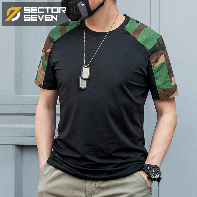District 7 23 Diamond tactical T-shirt round neck short sleeve contrast color quick-drying summer men’s military fans commuter Leisure outdoor