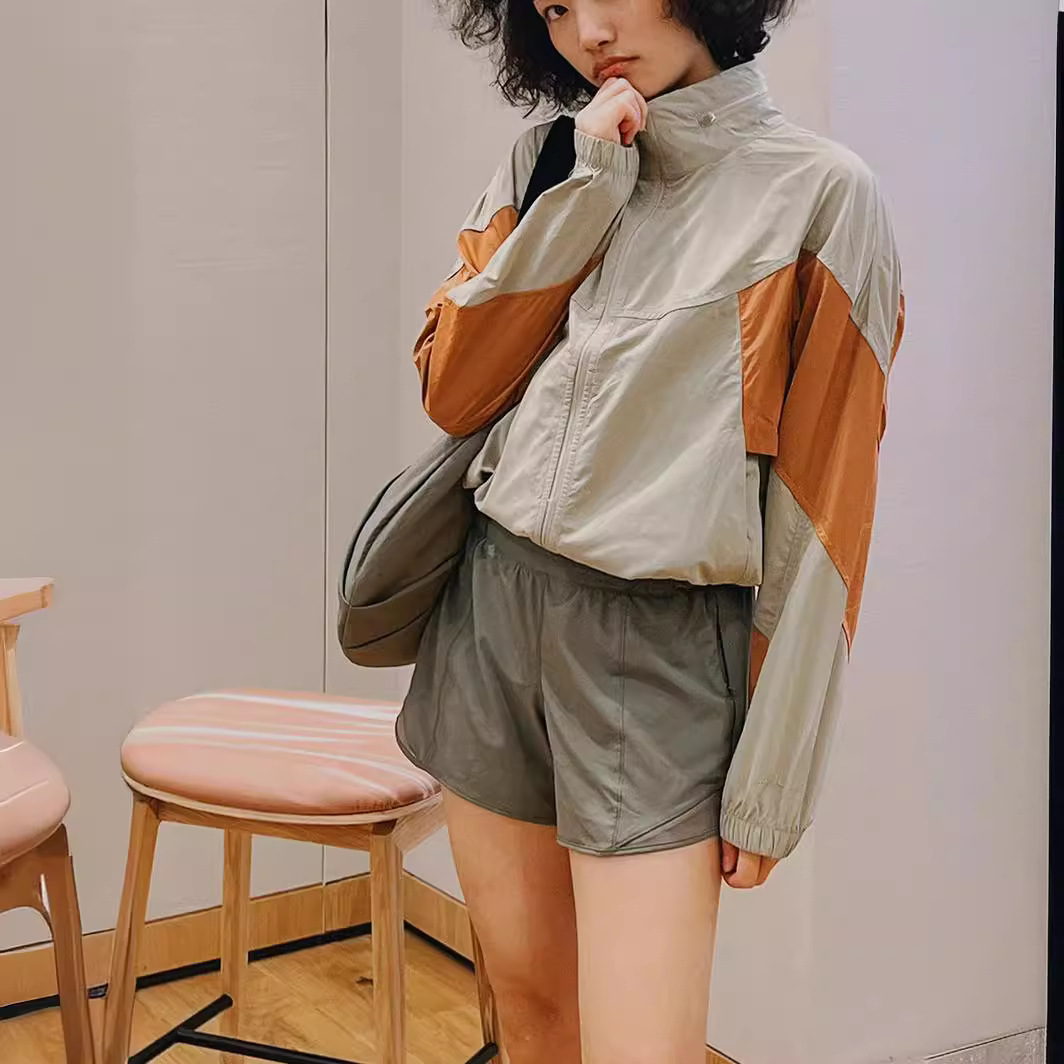 Original lulu same style American retro fashion brand contrast color kendou style jacket sun protection jacket short coat for women