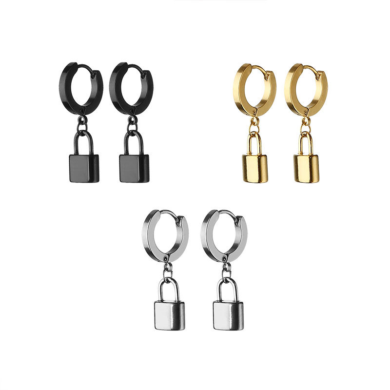 Korean version of punk lovers lock titanium steel men’s earrings earrings punk ebay wish cross-border for original jewelry