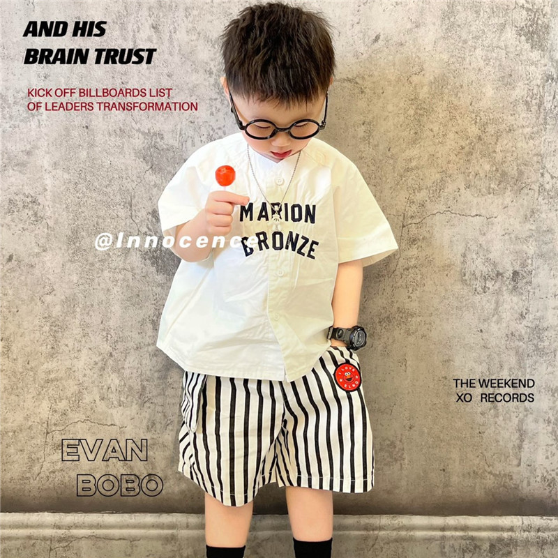 Children’s short-sleeved shirt 2024 boys summer thin Korean style western style lapel loose casual top trendy shirt