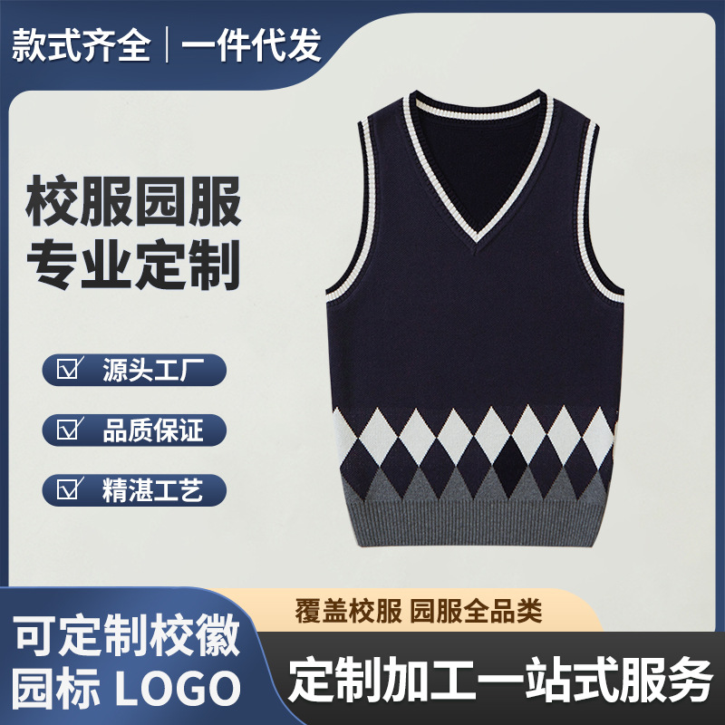 Dongguan Dalang Primary School Uniform Sweater College Style British Knitted Vest Tibetan Blue Lingge Boys’ and Girls’ Vest