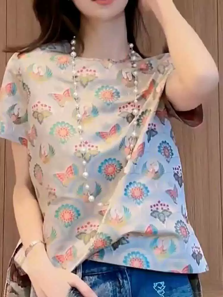 New Korean Style Loose Large Size Ethnic Style Printed Cotton Two-piece Casual Suit Women’s Summer